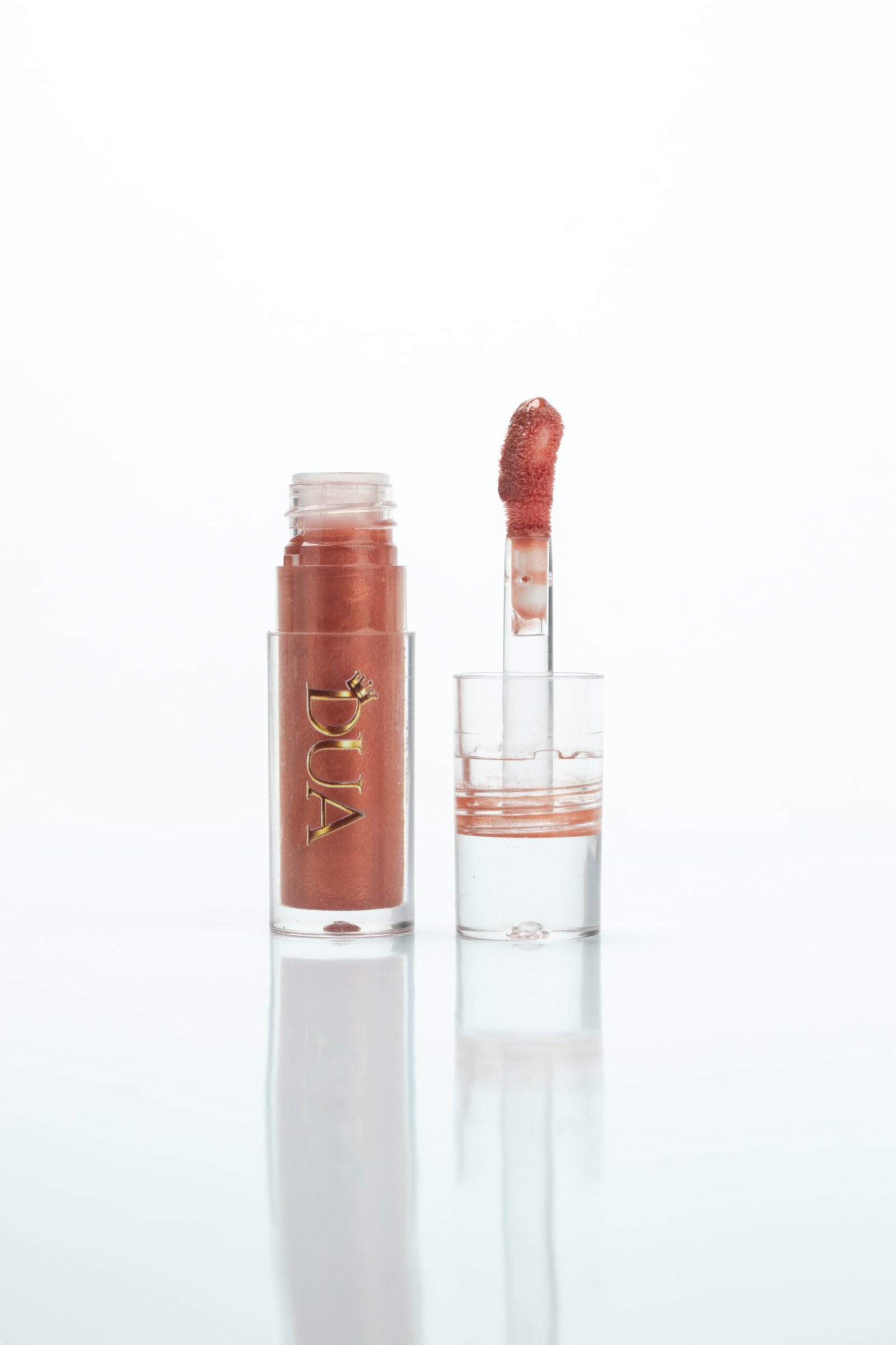 A glossy copper lip gloss with vibrant pigmentation and radiant shine