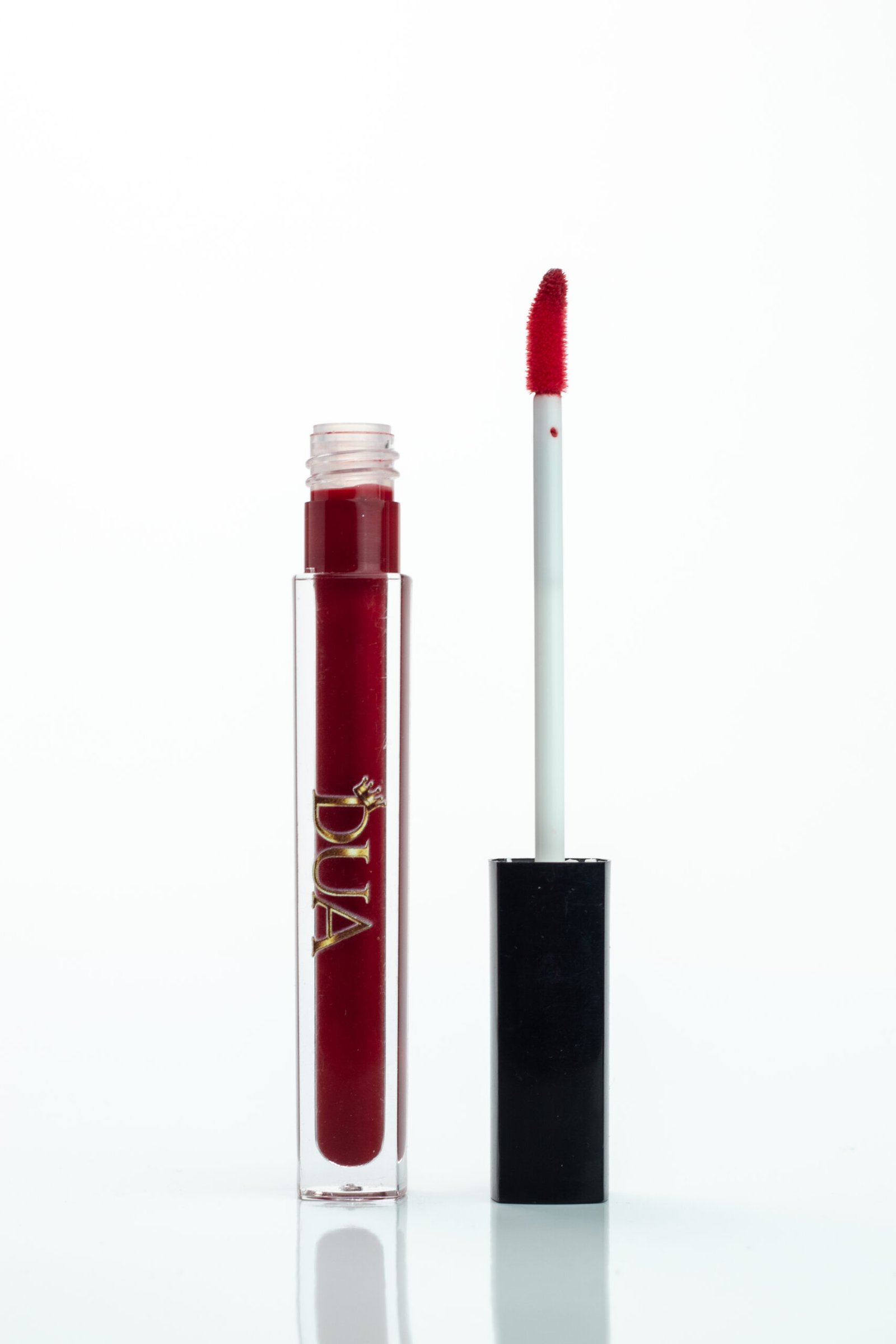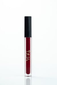 A dark red matte lip gloss designed for a bold, luxurious statement.